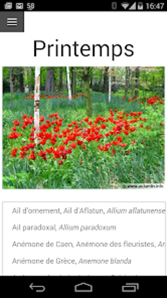 Bulbes à Fleurs är en användbar applikation för trädgårdsentusiaster som vill lära sig mer om blomlökar. Den erbjuder en omfattande encyklopedi med information om blommor som kan planteras under olika säsonger. Varje lök har en identifikationsfil, vilket gör det enkelt att förstå deras specifika egenskaper och krav. Användare kan enkelt navigera mellan de olika blommorna utan behov av internetuppkoppling, vilket gör den till en praktisk resurs för trädgårdsarbete på plats.